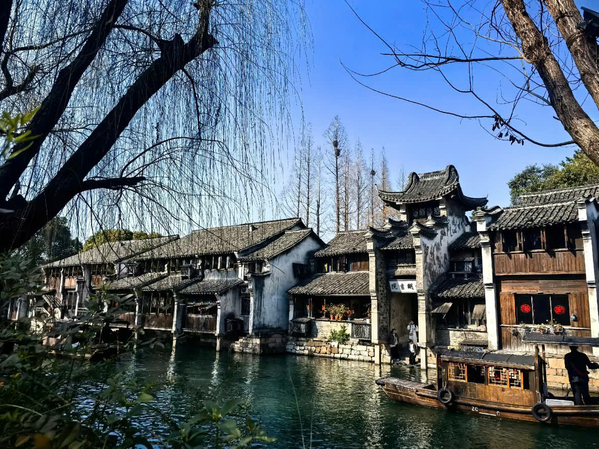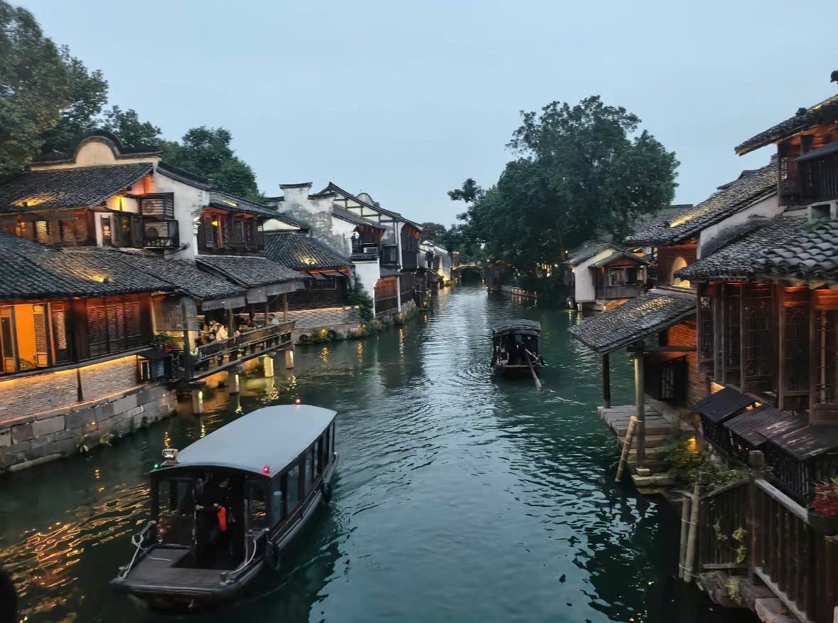Ô Trấn (Phía Tây) – Viên ngọc của vùng sông nước Giang Nam: Ô Trấn được chia làm hai khu vực: Đông Trác (sầm uất, đông đúc) và Tây Trác (rộng lớn, được bảo tồn tinh xảo hơn). Phía Tây Ô Trấn là nơi bạn sẽ tìm thấy vẻ đẹp hoàn hảo nhất của một “cổ trấn thủy hương” Giang Nam. Những con kênh đào uốn lượn, những cây cầu đá cong cong, những ngôi nhà gỗ mái ngói đen nằm sát bên bờ nước, và đặc biệt là hệ thống đèn lồng đỏ rực rỡ khi đêm xuống – tất cả tạo nên một khung cảnh như trong tranh thủy mặc. Khác với phía Đông, phía Tây còn có các điểm tham quan hấp dẫn như bảo tàng bách niên, nhà hát cổ, và các khu ẩm thực ven sông – nơi bạn có thể thưởng thức đặc sản địa phương trong không gian lãng mạn bên dòng kênh.
